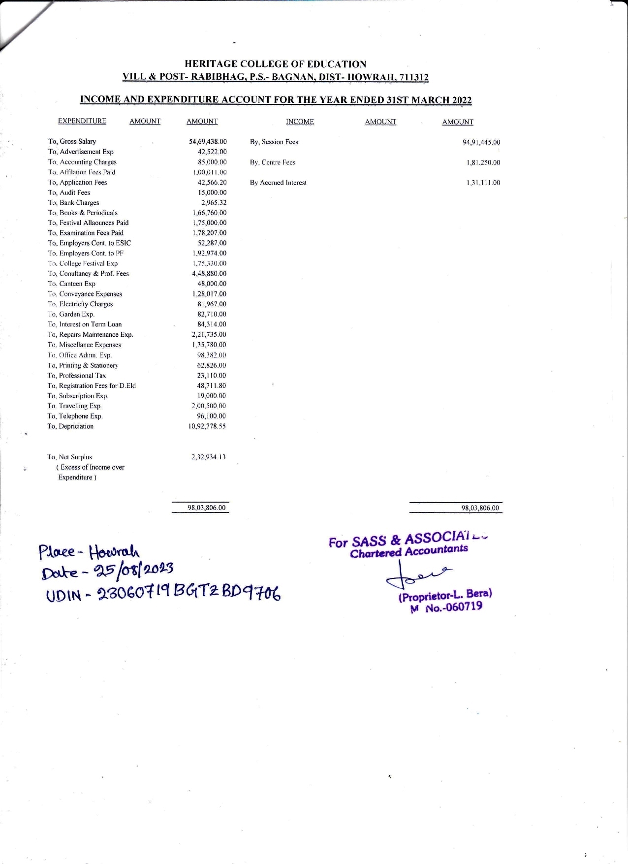 The Following Information Shall Be Displayed By The Institute Concerned On Its Own Website For The Information Of All Concerned As Per the Provision Of Regulations 7(10) And 8(16) Of The NCTE (Recognition Norms & Procedure) Regulations, 2007.
